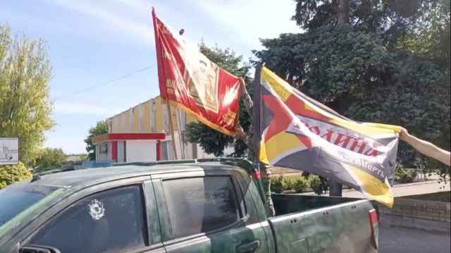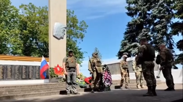 В День Победы бойцы отряда БАРС-10 возложили цветы к монументу, посвященному памяти павших в годы Великой Отечественной войны с флагом своего подразделения "Родина или смерть!"