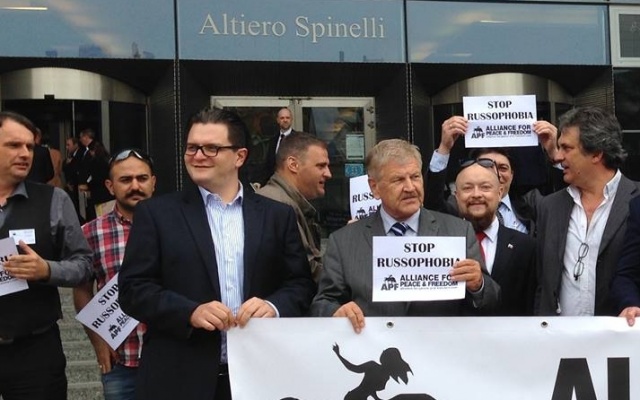 Напомним, в июне 2015 года в Брюсселе была запланирована совместная пресс-конференция представителей европейской партии "Альянс за мир и свободу" (Alliance for Peace and Freedom – APF) и российской партии "РОДИНА", посвященная вопросам мира и сотрудничества между ЕС и РФ и прекращению новой холодной войны.