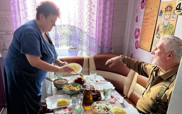 "У нас над ней своеобразное шефство - привозим продукты, необходимые вещи. А у нее - над нами, заряжает боевым духом. Поминая сына", - написал в своем телеграм-канале Журавлев.