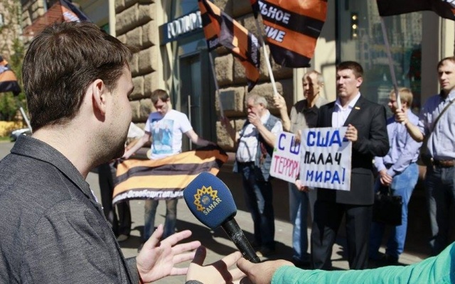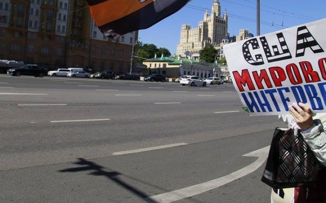 Участники массового пикета протестовали против вмешательства США в дела суверенных стран, геноцида русских на Украине, бомбардировок Сирии, поддержки ИГИЛ.