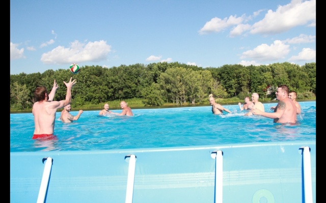 По завершении торжественных мероприятий и показательных выступлений, ветераны ВДВ провели командные соревнования по водному волейболу.