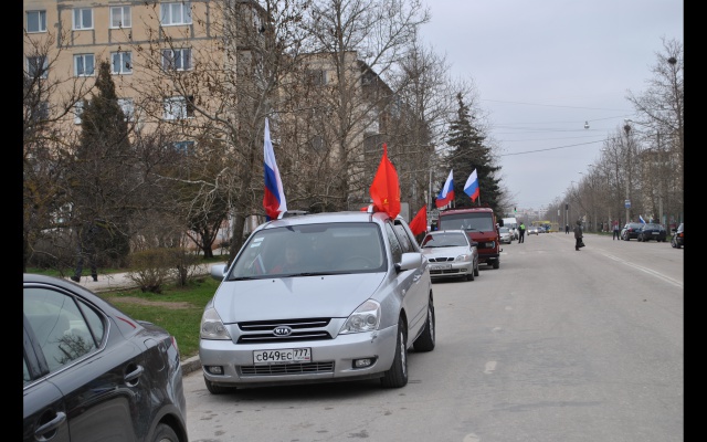 15 марта 2015 г. активисты Евпаторийского отделения партии "РОДИНА" в Республике Крым приняли участие в организации и проведении автопробега в честь празднования годовщины со дня проведения общекрымского референдума об определении статуса Республики Крым.