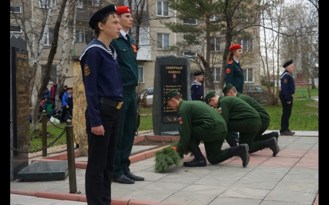 Ежегодно в микрорайоне "Гвардейский", где жил и учился Сергей Амосов, вспоминают своего героя и чтят его память.