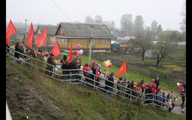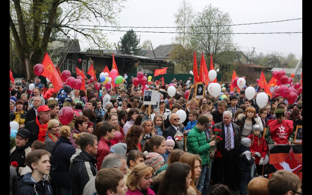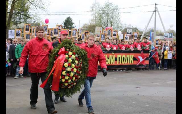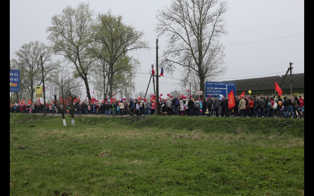 А в поселке Отрадное Кировского района, где с 1941 по 1944 год проходили тяжелые и кровопролитные бои, сторонники партии "РОДИНА" провели торжественное шествие. В акции принимали участие местные жители, члены партии и сторонники партии, школьники, студенты. В начале колонны шли участники всероссийской акции "Бессмертный полк". Затем шествовали представители местной власти, рабочие судоремонтного завода, местные жители, ветераны войны. Колонна участников шествия растянулась на 700 метров.